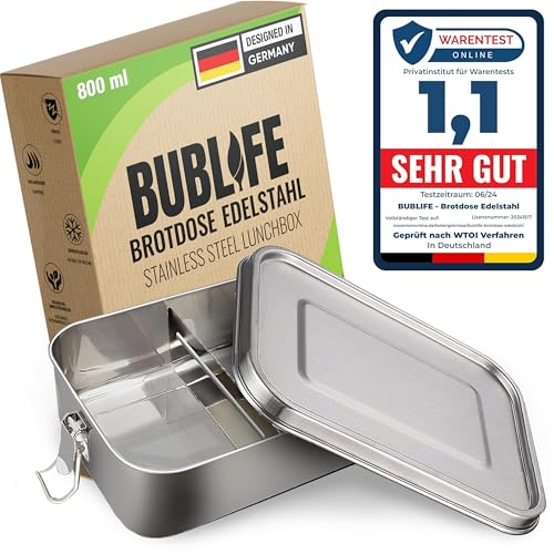 Bublife Lunchlåda, lunchlåda på 800 ml, barn med fack, Bentolåda, barn, lunchlåda för vuxna, matlåda i rostfritt stål med fack, matlåda för vuxna