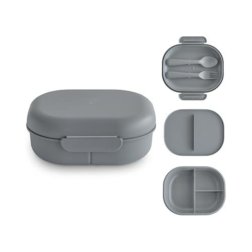 mushie Lunchlåda för barn lunchlåda för dagis och skola | Skiljevägg och fack med låsbart lock | Med bestickgaffel och sked (smoke)