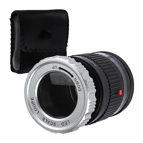 Bärbar 10x Förstoring Lupp med 30 mm Objektiv, LED och UV-ljus för Noggrann Mätning av Små föremål Till exempel Smycken, Textilier, Mynt och Frimärken