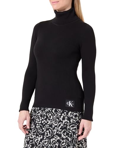 CK JEANS Dam vävd etikett rullad hals LV047D350G tröjor, svart, XS, Svart, XS