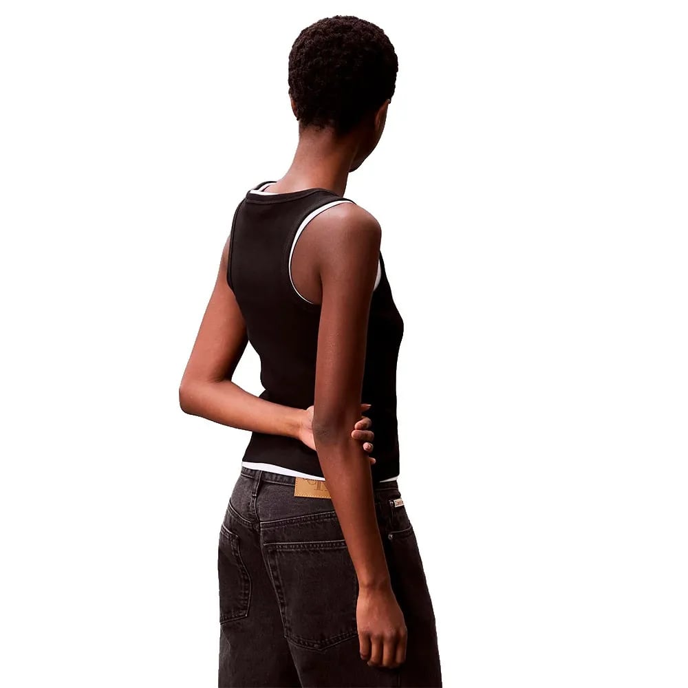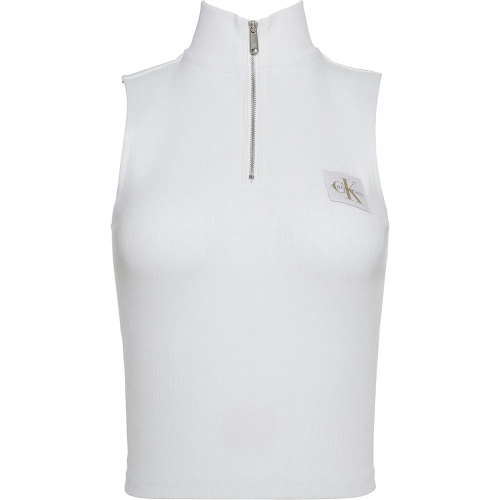 Calvin Klein jeans dam A- vävd etikett rib CAMI LV047C908G linne, vit (lysande vit), S, Vit (lysande vit), S