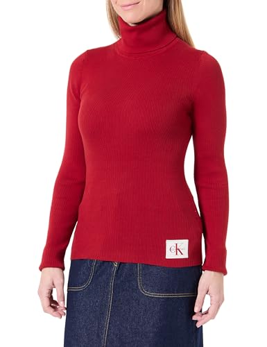 CK JEANS Dam vävd etikett rullad hals LV047D350G tröjor, röd, XS, Röd, XS
