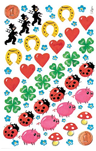 AVERY Zweckform Pappersdekaler lyckobringare 102 klistermärken (dekorativa klistermärken, nyckelpigor, hjärtan, hästskor, klöver, svamp, gris, pinig, skorstenssockare, självhäftande, scrapbooking, fotoalbum) 4413