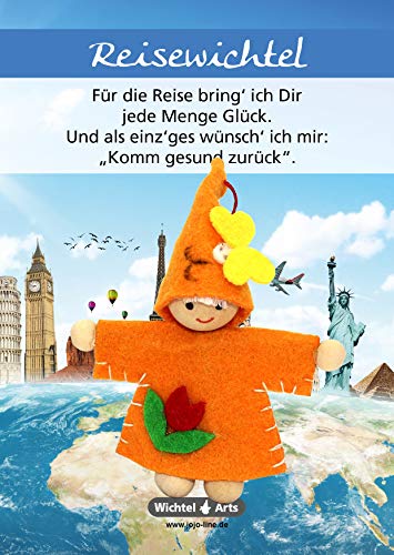 Viktel Arts resevikt lyckobringare, trä, orange med röd blomma, 15 x 10,5 x 2,7 cm