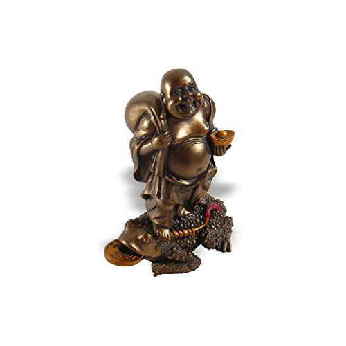 lachineuse - Skrattande sittande Buddha-staty - Buddhastaty 10 cm bronsfärg - Feng Shui dekoration - kinesisk Zen deco objekt för interiör, vardagsrum, kontor - presentidé Kina Asien lyckobringare