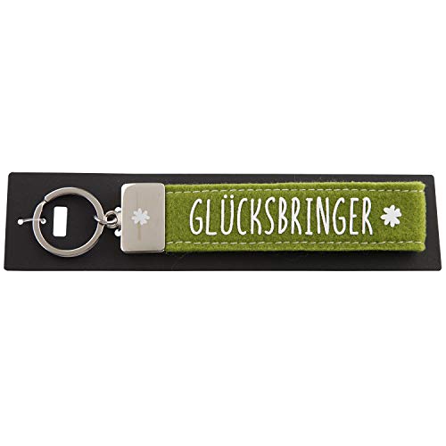 Depesche 4298-015 slingor nyckelring av filt, med graverad metallände och ikoniska tryck, lyckobringare, grön, ca 18,7 x 4,4 x 1 cm