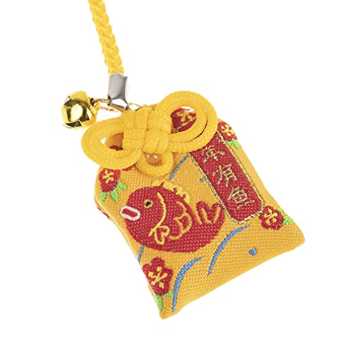 Lachineuse Japansk omamori Koi Carp för att locka lycka och välstånd - Japansk lyckobringare att hänga - traditionell japansk amulett - lyckoamulett - gul färg - japansk gåva