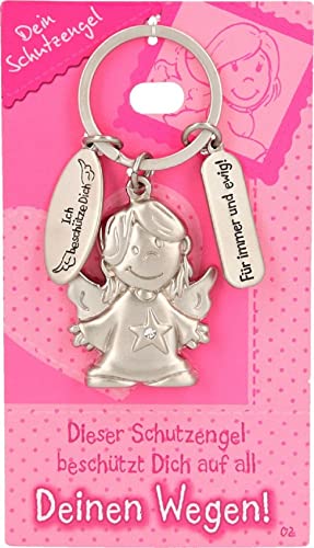 Depesche 7518-003 skyddsängel nyckelhänge av metall, lyckobringare med ängel, nyckelring och kärleksfullt budskap, som present till familjemedlemmar, vänner och bekanta