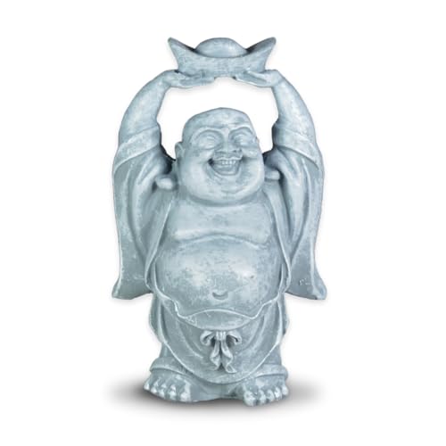 Staty Laughing Buddha – Zen och Feng Shui dekorationsstatyett – ger en lugnande och avkopplande atmosfär till ditt hem – lyckobringare, staty, färg grå – höjd: 12 cm – Zen'Light