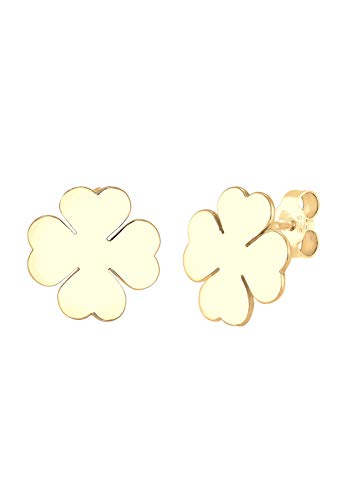 Elli PREMIUM örhängen damörhängen med klöverblad lyckobringare i 585 gult guld, fasettad slipning, Ingen ädelsten
