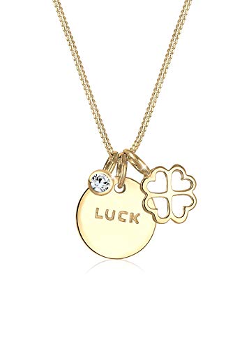 Elli PREMIUM halsband damer med hänge klöverblad lyckobringare talisman i 585 gult guld, 450, fasettad slipning