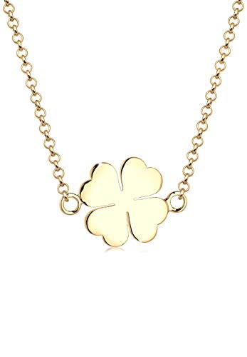 Elli PREMIUM halsband damer med hänge klöverblad lyckobringare i 585 gult guld, 450, fasettad slipning