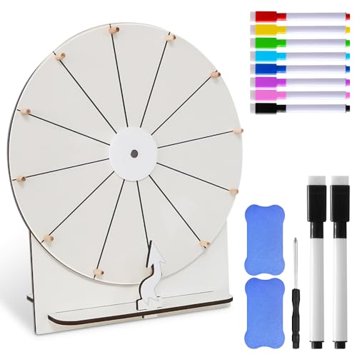 TGKYK lyckohjul att vrida, TGKYK 30 cm lyckohjul för egen design med suddgummi och markeringspenna, 12 kortplatser roterande hjul lyckohjul, Lucky Wheel för lotteri spel, karnevalfest, marknadsföring