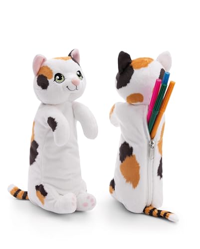 Pennfodral Katt Lyckokatt 12x12x25cm vit - Mjukt pennväska för flickor och kvinnor, skolväska, kontors- eller sminkpenna, mjukt plyschpennfodral