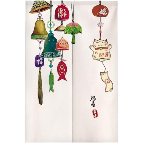 Noren lång dörrgardin i japansk stil, tryckt med lyckokatt och speldosa, hängande dörrgobeläng, för hemrestaurang entrédekoration