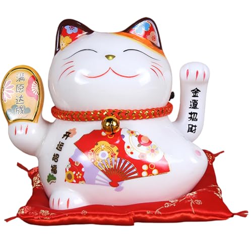 5,5-tums Lyckokatt, Batteridriven Japansk Turkatt med Viftande Arm Kinesisk Feng Shui-deoration Maneki Neko för Lyckopengar och Lycka Till, för Butik, Restaurang, Vardagsrum