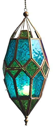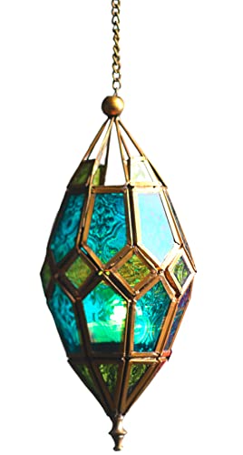 Purity Utsmyckad hängande lykta i marockansk stil för värmeljus – flerfärgat glas och guldfärgad metall (medium 10 x 8,5 x 33,5 cm)
