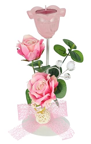 Värmeljushållare av glas med värmeljus, dekorerad med blomma, ros, ljus, ljushållare, bordsdekoration, värmeljusglas, lykta, romantisk dekoration, objekt, bröllopsdekoration