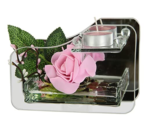Värmeljushållare av glas med värmeljus, ljus med blomma, ros, dekorativ kula, ljus, ljusstake, bordsdekoration, värmeljusglas, lykta, romantisk dekoration, objekt, bröllopsdekoration