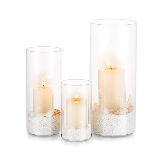 Orkan ljushållare glascylinder: 3 st/set klar blomvas för värmeljus lykta pelare flytande ljus för matbord dekorationer bröllop vardagsrum juldekorationer (S+M+L)