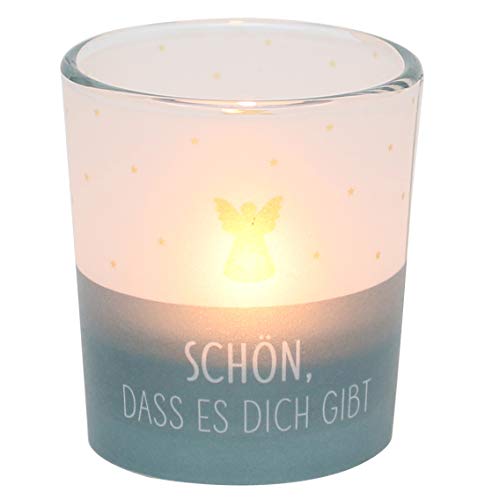 Dekohelden24 Stormljusglas transparent banderoll, inklusive 1 värmeljus, H/Ø: 6,5 x 6 cm, motiv: trevligt att det finns dig, lykta