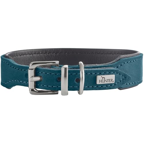 Hunter hundhalsband Malta, färg: petrol, av smörjt mjukt PU-läder, mjukt underlag, slitstark, lysande färger, handgjord, tillverkad i Tyskland, storlek: 42