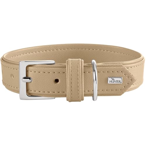 HUNTER Hundhalsband Amalfi, färg: beige, vegansk, konstläder i Nappa-utseende, mjuk, lättskött, lysande färg, särskilt bekväm att bära, tillverkad i Tyskland, storlek: 45