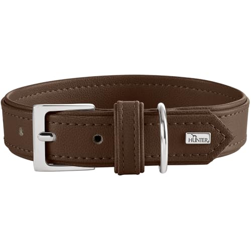 HUNTER Hundhalsband Amalfi, färg: Chokladbrun, vegansk, konstläder i Nappa-utseende, mjuk, lättskött, lysande färg, särskilt bekväm att bära, tillverkad i Tyskland, storlek: 35