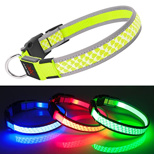 Ankilo LED-ljushalsband hund, lysande halsband för hundar uppladdningsbar, hundhalsband lysande halsband för hundar justerbar storlek säkerhet, 7 färgskiftande halsband hund ljus säkerhet, S