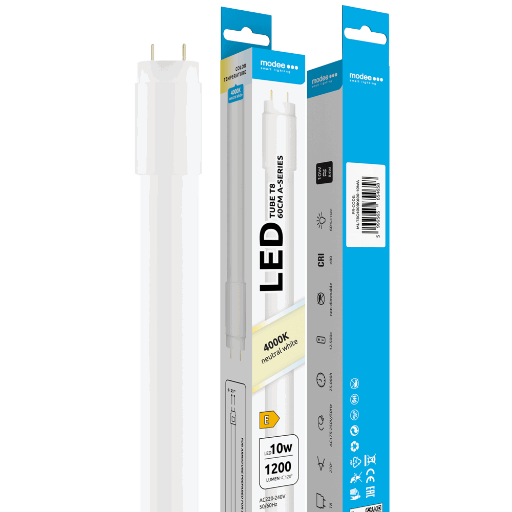 Modee | LED-lysrör 60cm | Neutralvit 4000K | 10W | 120 LM/W | Glas