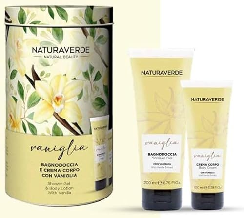 NATURAVERDE | Gift Set Sensorisk Vanilj - Duschtvål 200 ml + Kroppskräm 100 ml + Plåtcylinderbox - Lyxig uppsättning för en Hudvårdsupplevelse
