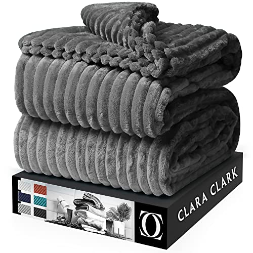 Clara Clark plysch fleecefilt – dubbel storlek – lätt supermjuk luddig lyxig sängfilt för säng – maskintvättbar – (66 x 90) (mörkgrå)