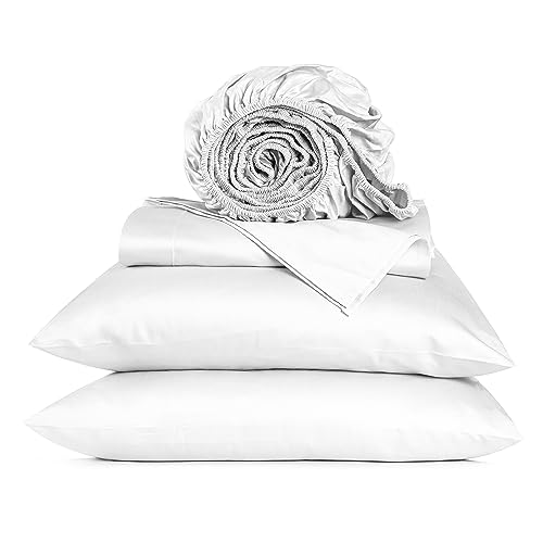 URBANHUT 800 trådtäthet lyxig king lakan, egyptisk bomullslakan (4 st set) kvalitet – satinlakan för king size-säng – släta mjuka och tjocka lakan med 38 cm djup ficka (vit)