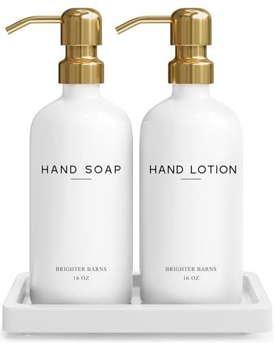 Ljusare Lador Lyxig tvåldispenser i glas badrumsset – flytande tvål och lotiondispenser badrumsset – handtvåldispenser bricka och pumpset – vitt och guld badrumsdekor och tillbehör (guld)