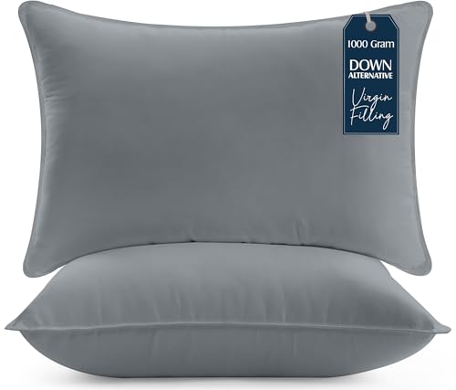 Basic Beyond King size-kuddar för sömn – mjuka alternativa kuddar lyxiga hotellkollektion sängkuddar set med 2, grå, 50 x 91 cm