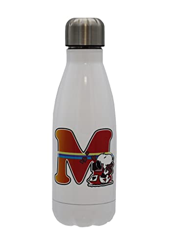 Snoopy - rostfri vattenflaska, hermetisk stängning, med flerfärgad bokstav M-design, 550 ml, vit färg, officiell produkt (CyP Brands)
