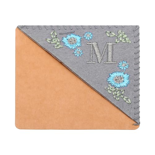 PATIKIL Personligt broderat hörnbokmärke, söt blomma filt sydd triangel bokmärke sidmarkör för kvinnor män bokälskare lärare, grå, bokstav M