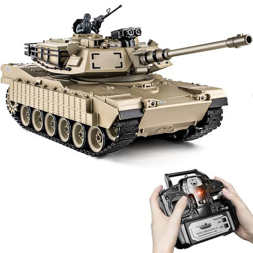 Supdex 1:18 RC tank, 2,4 GHz M1A2 Abrams fjärrkontroll tank modellleksaker, 15 kanaler strid arméleksak med rök, ljus och ljud, militär RC-fordon för vuxna och barn som skjuter BBS och vattenbomber