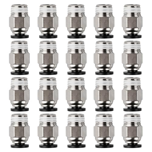 20 stycken PC4-M10-kontakter, PC4-M10 rak pneumatisk koppling, PC4-M10 pneumatisk kontakt, PC4-M10 rak pneumatisk anslutning för 3D-skrivare, snabbskruvande, gänga M10
