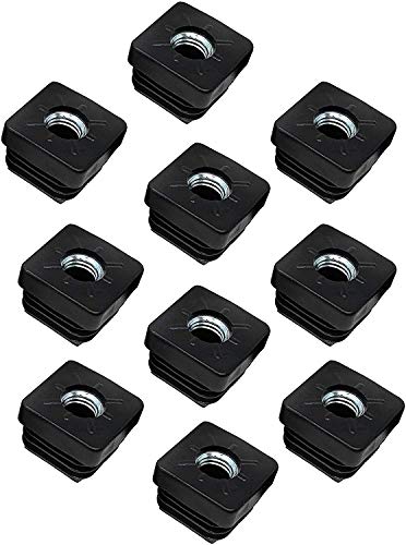 Design61 4 x gängproppar justerbar plugg för fyrkantiga rör av gjuten zink 25 x 25 mm x 1,5 mm med M10 inre gänga