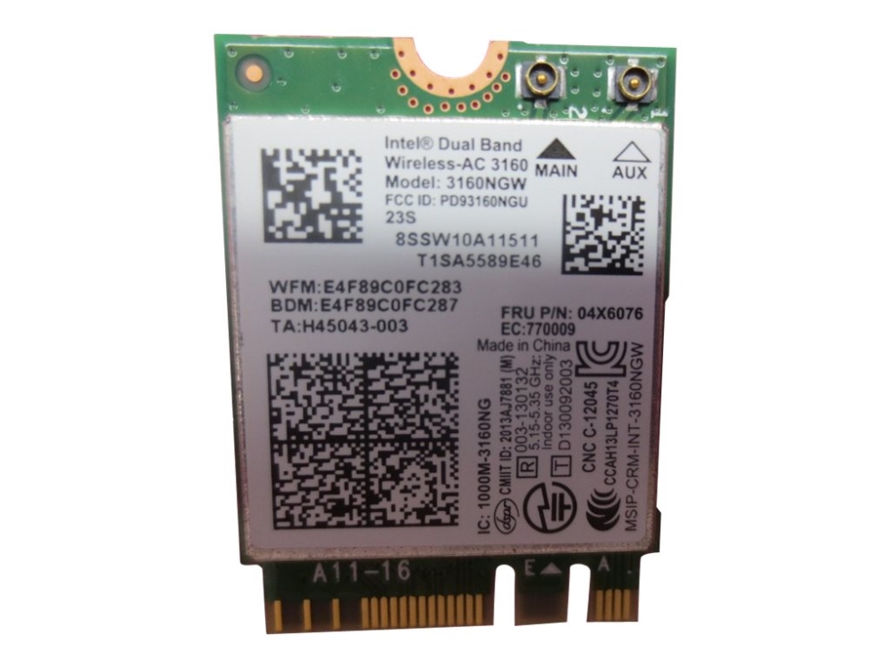 Intel Dual Band Wireless-Ac 3160 - Nätverksadapter - M.2 Card - Bluetooth 2.1 Edr, Bluetooth 2.1, Bluetooth 3.0 Hs, Bluetooth 3.0, Bluetooth 4.0, Wi-Fi 5 - För B40-50 B51-30 E40-80 Flex 3 11Xx 3 1470 Ideapad 100S-14 300-14 300S-11 Yoga 300-1