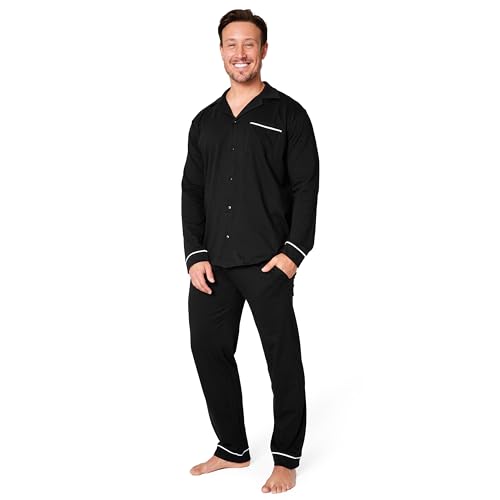 CityComfort Pyjamasset för män – klassisk Button Down-nattkläder långärmad och underdel pyjamas mysig vardagskläder M-3XL – nattkläder presenter till honom, Svart, L