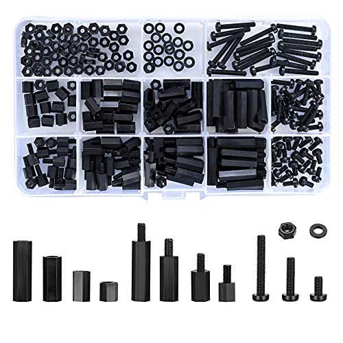 HSeaMall 360 st M2 M2,5 M3 nylon svart hex spacer skruv mutter standoff tillbehör sortiment kit hane till hona