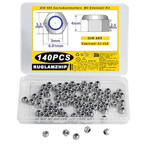 140 st M3-muttrar, självlåsande muttrar, DIN985-mutter M3 rostfritt stål standard A2 V2A muttrar, metrisk sexkantsmuttrar M3, säkerhetsmuttrar M3, stoppmuttrar, låsmuttrar, skruvmuttrar