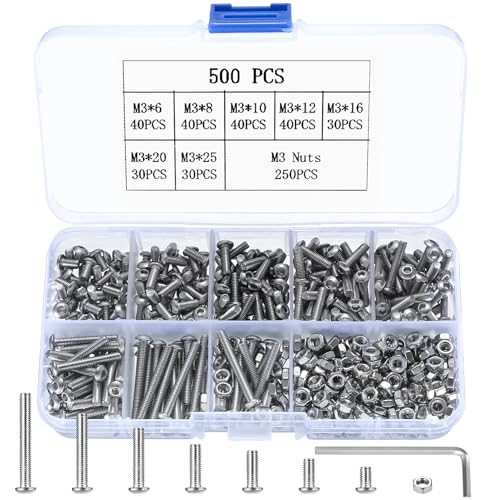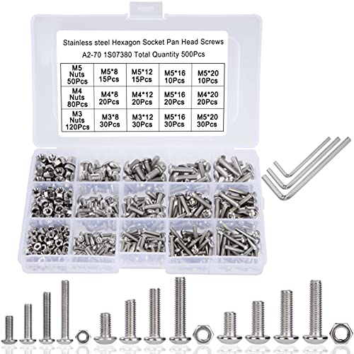M3-skruvset, 500 M3 rostfritt stål skruv och mutter kit, insexskruvar och muttrar sortiment set, gängskruvar med muttrar set, halvcirkelformat huvud linshuvudskruvsortiment