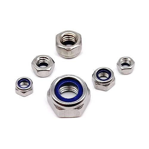 Rostfritt Stål SS304 Nylon Lockheed Mutter Låsmutter Bricka M3 Låsmutter Sexkant Mutter Sexkant Låsmuttrar med Nyloninsats(M3 (100 pcs/pack))