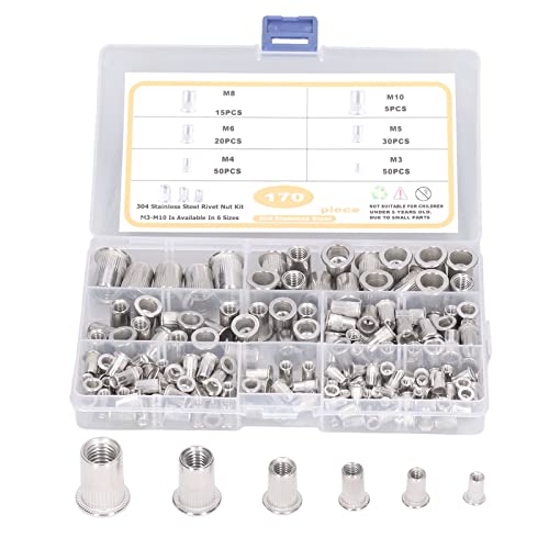 170 St Nitmuttrar Sortiment, M3, M4, M5, M6, M7, M8, Rostfritt Stål Nitmutter, Flat Head Nit Mutter