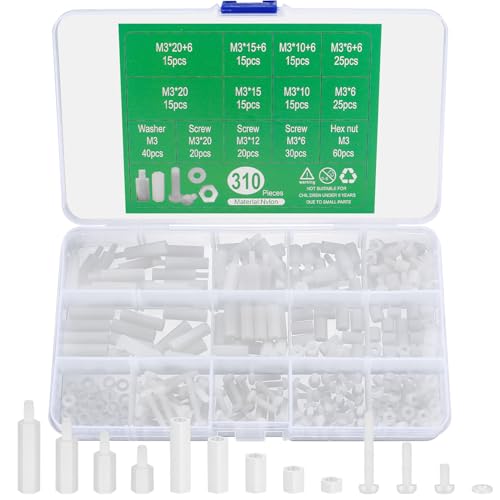310 st nylon hex-distanssensor, skruvmutter, stansad mutter, M3 hane hona kolumndistanser skruvmuttrar för tryckta kretskort