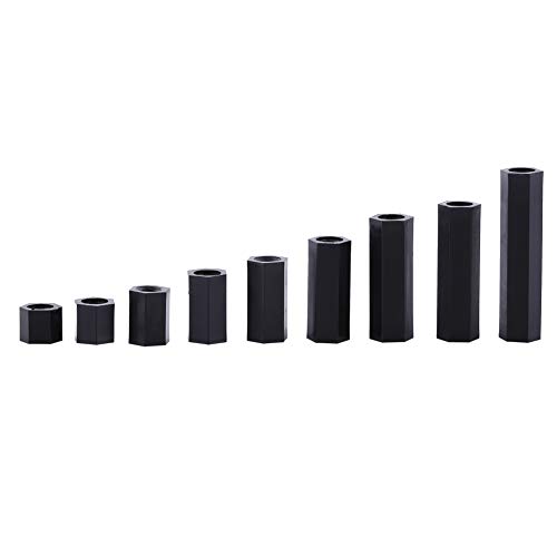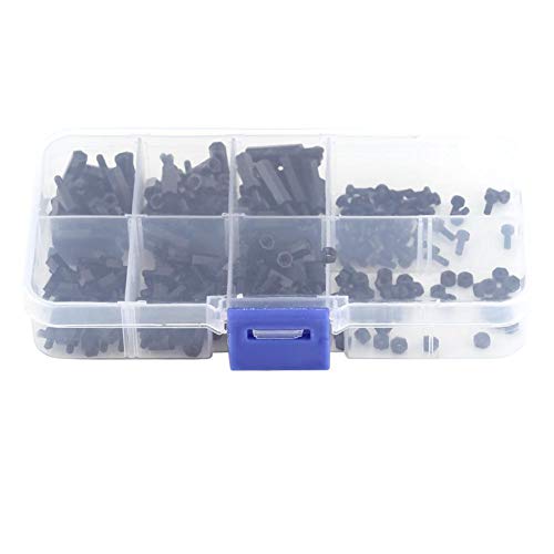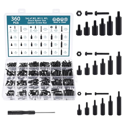 HSeaMall 360 st M2 M2,5 M3 nylon svart hex spacer skruv mutter standoff tillbehör sortiment kit hane till hona