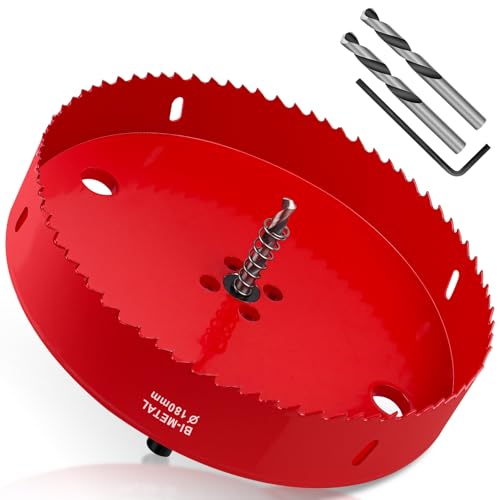 Yeepeo Hålsåg 180 mm, HSS M42 Bi-metall hålsågar trä, hålsåg med adapter och centreringsborr idealisk för trä, gipsskiva, torrvägg, plast, 1 st röd